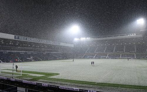 Questa la nevicata che ha coperto l'impianto di West Bromwich. Le condizioni meteorologiche non hanno impedito o ritardato l'inizio del match contro l'Arsenal: l'ottimo lavoro di spazzamento ha convinto tutti i protagonisti, dopo un breve sopralluogo sul campo, a disputare regolarmente la gara