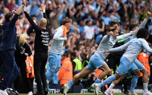 Un'altra giornata che il Manchester City e tutto il calcio inglese difficilmente dimenticheranno. Una rimonta completata in cinque minuti e un altro campionato vinto dalla squadra di Guardiola al fotofinish, l'ottavo nella storia dei Citizens. Al triplice fischio dell'arbitro i tifosi sono impazziti di gioia e hanno invaso l'Etihad, ritardando anche la cerimonia di premiazione dei giocatori. Alla fine la festa di De Bruyne e compagni