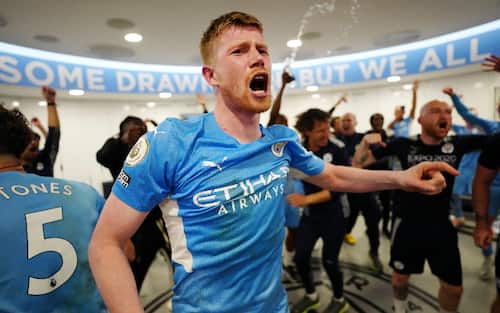 Ed è festa grande anche nello spogliatoio dei Citizens, con uno scatenato Kevin De Bruyne, miglior giocatore della Premier