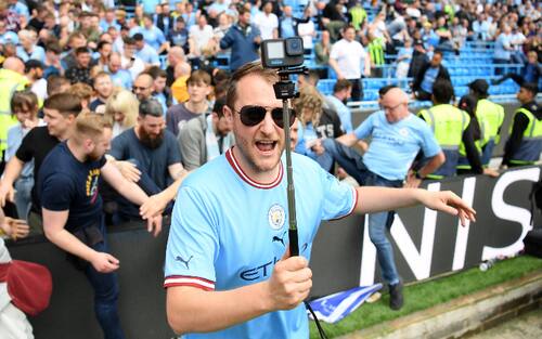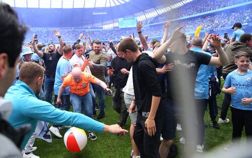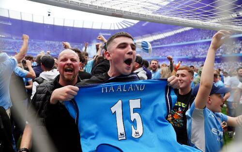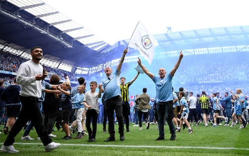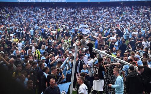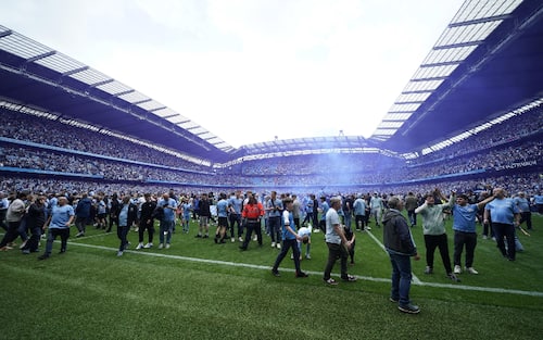 I tifosi del City all'Etihad non trattengono la gioia e invadono il campo