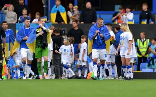 Applausi e tante bandiere ucraine sugli spalti: l'atmosfera al Goodison Park ha messo in secondo piano il risultato della partita. Anche se un episodio sta facendo il giro del mondo...