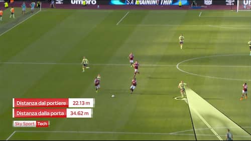 - Haaland utilizza lo scanning anche in un altro modo. Quando è libero dagli avversari, non guarda la palla ma il portiere e la distanza dalla porta, così ha tutte le informazioni per andare a segno. Il caso in esame riguarda West Ham-Manchester City e il gol del 2-0, quando Haaland si presenta a tu per tu con Fabianski e lo batte