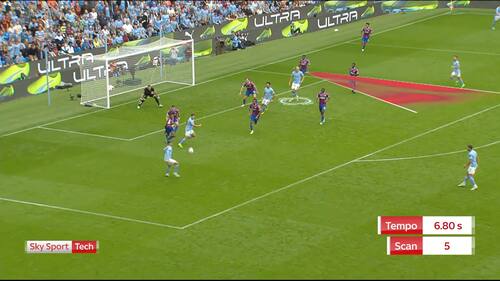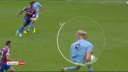 - Il primo gol preso in analisi è quello del momentaneo 2-2 contro il Crystal Palace dello scorso 27 agosto. Haaland scannerizza cinque volte in 6''80: sostanzialmente, prima di ricevere il pallone è conscio di ciò che sta accadendo attorno a lui.