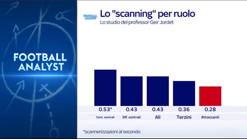- Nel suo lungo studio, il professor Jordet ha diviso i giocatori in due categorie: low scanners, chi scannerizza poco, e high scanners, chi scannerizza tanto. Gli "high scanners" passano meglio il pallone, guardano il gioco e aiuta la squadra a giocare a calcio. Altra componente fondamentale è il timing: i calciatori scannerizzano in mezzo ai tocchi del pallone dei compagni e si guardano attorno per recepire il maggior numero di informazioni possibili