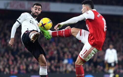 Con un gol al 90' di Nketiah (doppietta) i Gunners superano 3-2 lo United: Arteta torna a +5 sul City, che nel pomeriggio grazie alla 4^ tripletta in campionato del solito Haaland si era riavvicinato battendo il Wolverhampton. Senza reti l'altra sfida del pomeriggio tra Leeds e Brentford. Domani chiude il turno la sfida tra Fulham e il Tottenham di Conte. Tutti i risultati della 21^ giornata di Premier League, che ha visto sabato pomeriggio il pari tra Liverpool e Chelsea