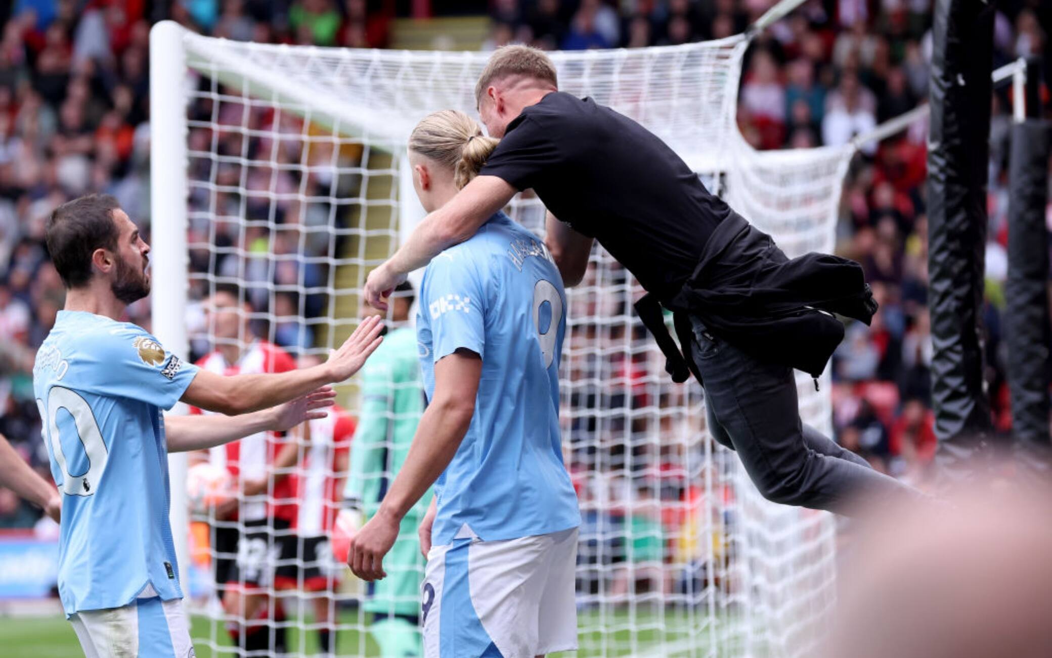 Haaland, tifoso invade ed esulta col norvegese in Sheffield United-Manchester City. VIDEO