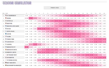 - Vengono simulate le partite rimanenti nella stagione oltre 10mila volte, in modo che sia possibile stimare la probabilità che ogni squadra finisca in ogni posizione in campionato