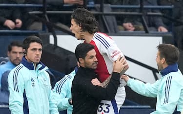 All'Etihad succede di tutto sin dai primi minuti. Al Manchester City ne bastano appena 9 per sbloccare l'incontro grazie a Erling Haaland. Lanciato in velocità da Savinho, il norvegese batte Raya e trova il 100esimo gol con la maglia sky blues in 105 presenze. La partita sembra in discesa per il City che sfiora il raddoppio con Gundogan (palo su punizione), ma prima l'infortunio di Rodri (uscito in lacrime a metà del primo tempo) e poi i due gol dell'Arsenal cambiano volto all'incontro. A dare il via alla rimonta dei gunners nel primo tempo è Riccardo Calafiori che, lanciato titolare da Arteta, trova una bellissima rete con un mancino da fuori area. Prima dell'intervallo l'Arsenal trova il 2-1: sugli sviluppi di un calcio di punizione, Gabriel svetta di testa e batte Ederson. Qui, tuttavia, cambia di nuovo il copione del match perché l'Arsenal resta in 10 uomini per l'espulsione di Trossard: già ammonito in precedenza, l'ex Brighton riceve il secondo giallo (non senza polemiche) per aver allontanato il pallone dopo un fallo commesso.