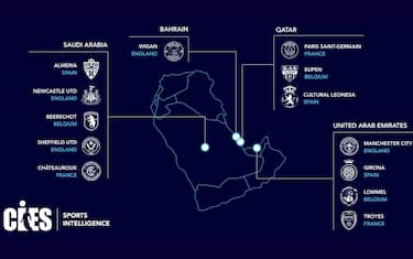 L'Osservatorio calcistico del CIES ha tracciato la mappa degli sceicchi proprietari di club in Europa. Non c'è solo il nuovo Newcastle del ricchissimo Fondo per gli investimenti pubblici (PIF) dell'Arabia Saudita, con anche Psg e City sono dieci i club tra Inghilterra, Spagna, Belgio e Francia che hanno come soci di maggioranza investitori che arrivano dai paesi del Golfo. E in alcuni casi più club sono controllati dallo stesso gruppo: ecco chi sono