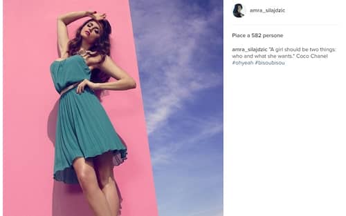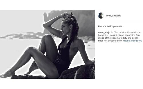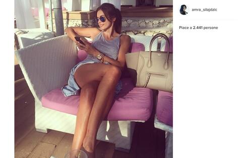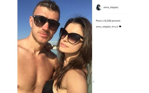 Bacio romantico all'Olimpico della splendida Amra Silajdzic, moglie di Edin Dzeko, decisivo nella vittoria della Roma contro il Cagliari. La modella e il bomber bosniaco (14 reti in campionato) stanno insieme da oltre 5 anni e hanno una bimba, Una (foto da Instagram) -