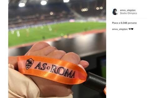 Gesto molto romantico all'Olimpico della splendida Amra Silajdzic, moglie dell'attaccante bosniaco, decisivo nella vittoria della Roma contro il Cagliari. La modella e il bomber giallorosso (14 reti in campionato) stanno insieme da oltre 5 anni e hanno una bimba cha hanno chiamato Una