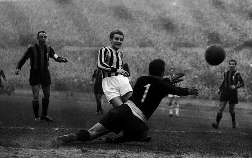 Juventus-Inter è da sempre la partita dei grandi campioni, di ogni generazione. Da Boniperti (qui a segno nel 2-2 del 22 novembre 1953) a Charles, passando per Suarez e Facchetti, il derby d'Italia era un match-clou anche in bianco e nero. A Torino si contano 57 successi della Juve, 15 pareggi e sole 11 affermazioni interiste. Negli ultimi 10 incroci in casa bianconera, sono 6 le vittorie della Juventus, oltre a 3 pareggi e una vittoria nerazzurra -
