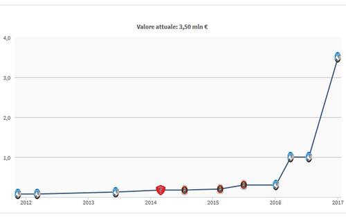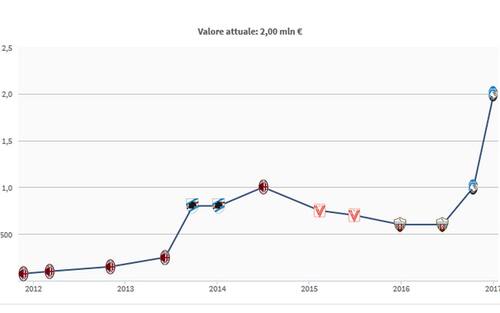 Davvero impressionante l’evoluzione del valore di Andrea Conti, stimato attorno al milione di euro solo lo scorso luglio. Punto fermo nella Nazionale U-21 e pedina inamovibile a Bergamo per Gasperini, il 22enne cresciuto a Zingonia è maturato nei prestiti tra Perugia e Lanciano fino ad imporsi nella massima serie. E non mancano i progressi dal punto di vista tattico -