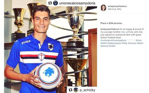 Il 21 enne attaccante ceco della Samp con la sorella Kristyna, modella (foto da Instagram)