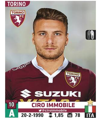 Chiusa, senza gloria, l'esperienza in Spagna con il Siviglia, Immobile torna al Toro con la formula del prestito. Arriva a gennaio 2016 e vi rimane fino al termine del campionato, quando, con Ventura in panchina, gioca 14 partite e segna 5 gol (Foto: Panini) -