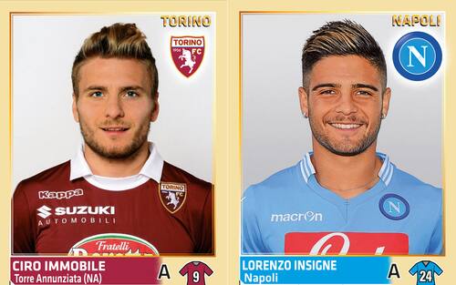 STAGIONE 2016-17. E arriviamo all'oggi. Immobile, dopo il prestito al Toro, passa alla Lazio a titolo definitivo in uscita dal Siviglia. Insigne sempre al Napoli. Domenica sera all'Olimpico i gemelli del gol del Pescara delle meraviglie nella stagione di B 2011-12 saranno l’uno di fronte all’altro. Avversari. Anche se amici. In palio c’è un posto in Champions (Foto: Panini) -