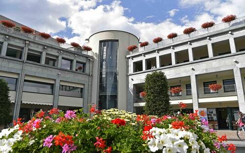 Una vista da fuori delle Terme di Bormio che hanno accolto questa mattina i giocatori di Sinisa Mihajlovic -