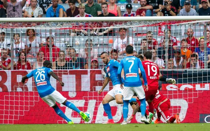 La squadra di Sarri domina contro i bavaresi, sconfitti dai gol di Koulibaly e Giaccherini all'inizio dei due tempi. I tedeschi bene nei primi venti minuti, poi riemergono le solite difficoltà di quest'estate. Altri passi avanti per gli azzurri, solidi in fase difensiva