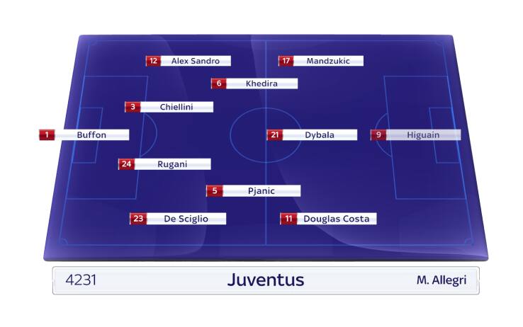 Massimiliano Allegri dovrebbe affidarsi ancora al 4-2-3-1 con Buffon in porta. In difesa ballottaggio tra Lichsteiner e De Sciglio sulla destra, al centro Rugani con uno tra Benatia e Chiellini, mentre a sinistra è confermato Alex Sandro. Pjanic e Khedira a centrocampo, sulla trequarti si giocano una maglia a destra Cuadrado e Douglas Costa, mentre sono sicuri del posto da titolare Dybala, Mandzukic e Higuain. Il Tottenham ha lavorato molto sulla difesa a 3 vista dell'inizio della Premier League e la Juve Pochettino dovrebbe confermare tre difensori nel reparto arretrato. In avanti Alli ed Eriksen agiranno alle spalle di Kane.