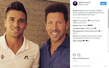 Amichevole di lusso a Madrid, con la Fiorentina che questa sera affronterà in terra spagnola il Real per il trofeo Bernabeu. L’occasione per provare a cancellare al più presto la sconfitta all’esordio in campionato contro l’Inter di domenica scorsa e allo stesso tempo la possibilità per Stefano Pioli di provare nuove soluzioni tattiche, dando minutaggio anche ai nuovi acquisti arrivati negli ultimi giorni di calciomercato. Tra loro c’è anche Giovanni Simeone, attaccante classe 1995 acquistato dal Genoa, che prima di scendere in campo contro il Real Madrid ha ricevuto una visita davvero speciale: nel ritiro viola, infatti, era presente anche Diego Simeone, allenatore dell’Atletico Madrid e papà dell’attaccante della Fiorentina. Un saluto affettuoso tra padre e figlio, magari chissà anche qualche dritta in vista della gara di questa sera al Bernabeu, poi una foto tra i due pubblicata dai profili social della società Viola. Per il ‘Cholito’ una notte speciale, con un tifoso d’eccezione in più sugli spalti: papà Diego.