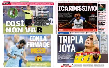 Dalla tripletta di Dybala contro il Genoa allo show di Icardi all'Olimpico contro la Roma, passando per l'estero, Messi e la Var: "Giallorossi furiosi per un fallo da rigore". Questo ed altro nelle prime pagine dei quotidiani