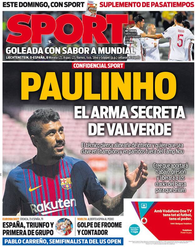 Il Barcellona studia la prossima mossa e pensa a Paulinho. Arrivato dalla Cina, il centrocampista brasiliano è passato un po' inosservato a causa dell'acquisto di Dembelè. Tuttavia - secondo la prima pagine di Sport - potrebbe risultare l'arma segreta di Valverde. I blaugrana sfideranno la Juventus in Champions, Paulinho viaggia verso la titolarità. L'allenatore, infatti, pensa che l'ex Guangzhou potrebbe far brillare le stelle del Barcellona col suo lavoro "dietro le quinte". Lavoro, pressione e quantità a centrocampo.