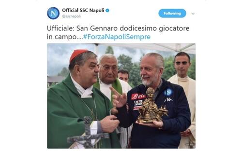 L'ironia sui social: i tifosi si affidano a San Gennaro per vegliare sulla squadra e per poter sognare lo scudetto -