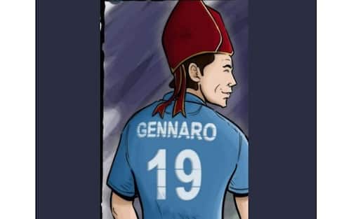 Ecco un San Gennaro in maglia azzurra...