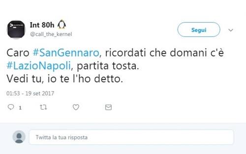Alla vigilia dell'importante sfida tra Napoli e Lazio, a Napoli si è ripetuto il miracolo del sangue. Tra sacro e profano, il web chiede al Santo patrono qualche piccolo aiutino...