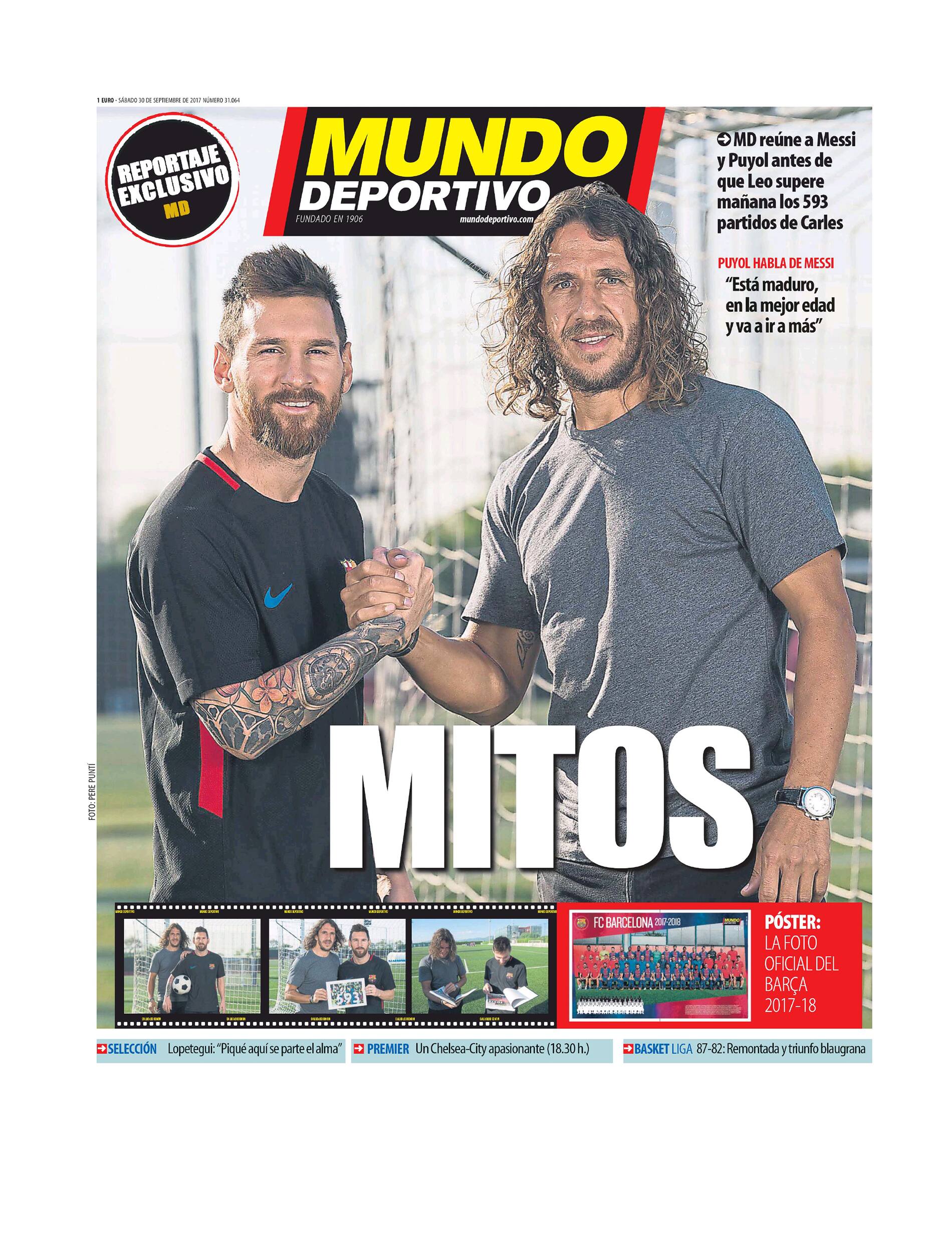 Mundo Deportivo apre con una foto che ritrae Puyol e Messi, titolando “Miti”. Il quotidiano spagnolo ha riunito i due campioni che hanno fatto la storia del Barcellona, visto che Messi raggiungerà le 593 presenze del difensore. In Spagna c'è anche la polemica per il referendum per la Catalogna. Soluzione, quella dell'indipendenza, appoggiata anche da Piqué, che è stato poi ripreso da Sergio Ramos per un suo post su Twitter. Il difensore ha detto che suderà per la maglieta della Spagna ed ha ricevuto anche la difesa di Lopetegui. Marca dedica a quest'episodio l'apertura del giornale di oggi. AS, invece, apre con Asensio: “Qui mi sento importante”. L'attaccante ha festeggiato così il suo rinnovo di contratto.