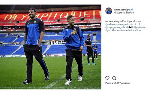 Andrea e il "socio" Papu Gomez, capitano dei bergamaschi (foto da Instagram)