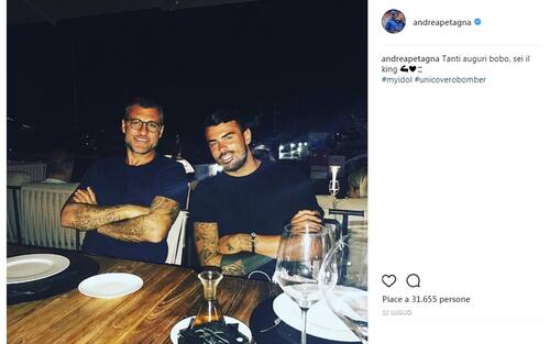 Andrea e il suo idolo Bobo Vieri, "the King" (foto da Instagram)