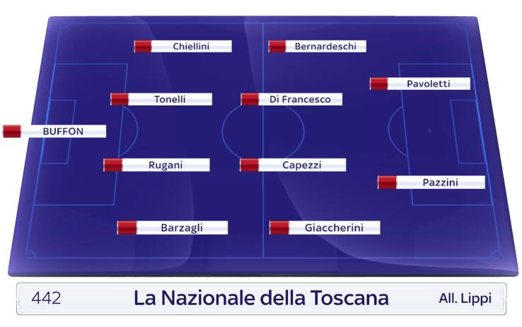 Se il ct dell’Italia schierasse gli azzurri con Buffon, Chiellini, Barzagli e Rugani in difesa (che poi è quella della Juventus), nessuno si meraviglierebbe. Anche un ipotetico allenatore della Toscana potrebbe farlo, visto che i quattro sono rispettivamente di Carrara, Pisa, Fiesole e Lucca. Un attacco con Bernardeschi, Pazzini e Pavoletti, poi, non sarebbe certo da buttar via. Non volendo far litigare Sarri, Allegri e Spalletti, mettiamo Lippi in panchina. Il viareggino sa come si vince con una nazionale.