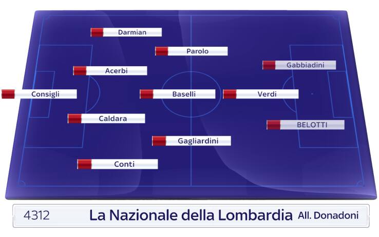 La nazionale lombarda sarebbe probabilmente una delle “nazionali regionali” più competitive in assoluto. Di forte impronta bergamasca con i vari Caldara, Gagliardini, Gabbiadini e Belotti, questa nazionale non si allontana poi molto da quella schierata abitualmente da Gian Piero Ventura. In panchina un altro bergamasco, Roberto Donadoni.