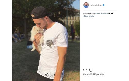 Nel cuore del 22enne difensore slovacco dell'Inter Milan Skriniar - che affronterà la sua "ex" Sampdoria - c'è la bella modella e connazionale Barbora Hroncekova, ma anche il loro cane, che la coppia chiama affettuosamente "Baby" e da cui non si separano mai. Un "duro" in campo, ma tenerissimo con i suoi affetti (foto da Instagram)