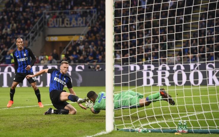Parte bene la Sampdoria, pressing alto e idee chiare al servizio di un mix di talento e muscoli. Ma il primo vero pericolo, dopo una conclusione alta di Zapata dal limite dell’area, arriva dal destro di Candreva, che l’esterno della Nazionale fa sibilare a pochi centimetri dal palo alla destra di Puggioni. Spalletti non ha cambiato nulla rispetto al doppio impegno con Milan e Napoli: Borja Valero fa il trequartista, Vecino e Gagliardini i centrali a centroampo. Ma la Samp in mezzo ha tanta tecnica e molta velocità e nonostante il pericolo arrivato da Candreva i giocatori di Giampaolo continuano a pressare e recuperare palla sempre nella metà campo nerazzurra. La difesa nerazzurra però non corre pericoli, il centrocampo si abbassa quasi a chiamare la Samp nella propria metà campo e liberare spazio per la corsa degli esterni, micidiali nelle ripartenze. E così, prima Perisic riceve palla sulla sinistra, si libera di Berezinsky ma trova le mani di Puggioni in presa bassa; poi sempre il croato, insolitamente sulla destra, serve D’Ambrosio che calcia di poco a lato; quindi ancora Candreva ha tutto lo spazio per scatenare la sua corsa, arrivare al limite e chiamare il portiere della Samp a una parata tuttaltro che facile. Tutto in 5 minuti, il gol non sembra molto lontano. E infatti eccolo arrivare puntuale, sugli sviluppi di un angolo. Nemmeno a dirlo lo segna un ex, forse il più chiacchierato ma meno atteso di tutti: Milan Skriniar. La palla calciata da Candreva sbatte quasi casualmente sullo slovacco che però è il più reattivo di tutti, si lancia in scivolata, anticipa Puggioni e seguendo una moda forse troppo abusata decide di non esultare in rispetto dei suoi vecchi tifosi.
