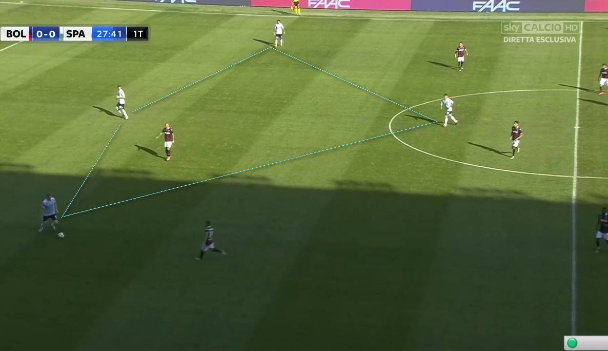 Il rombo di costruzione della SPAL pressato dalle tre punte del Bologna.