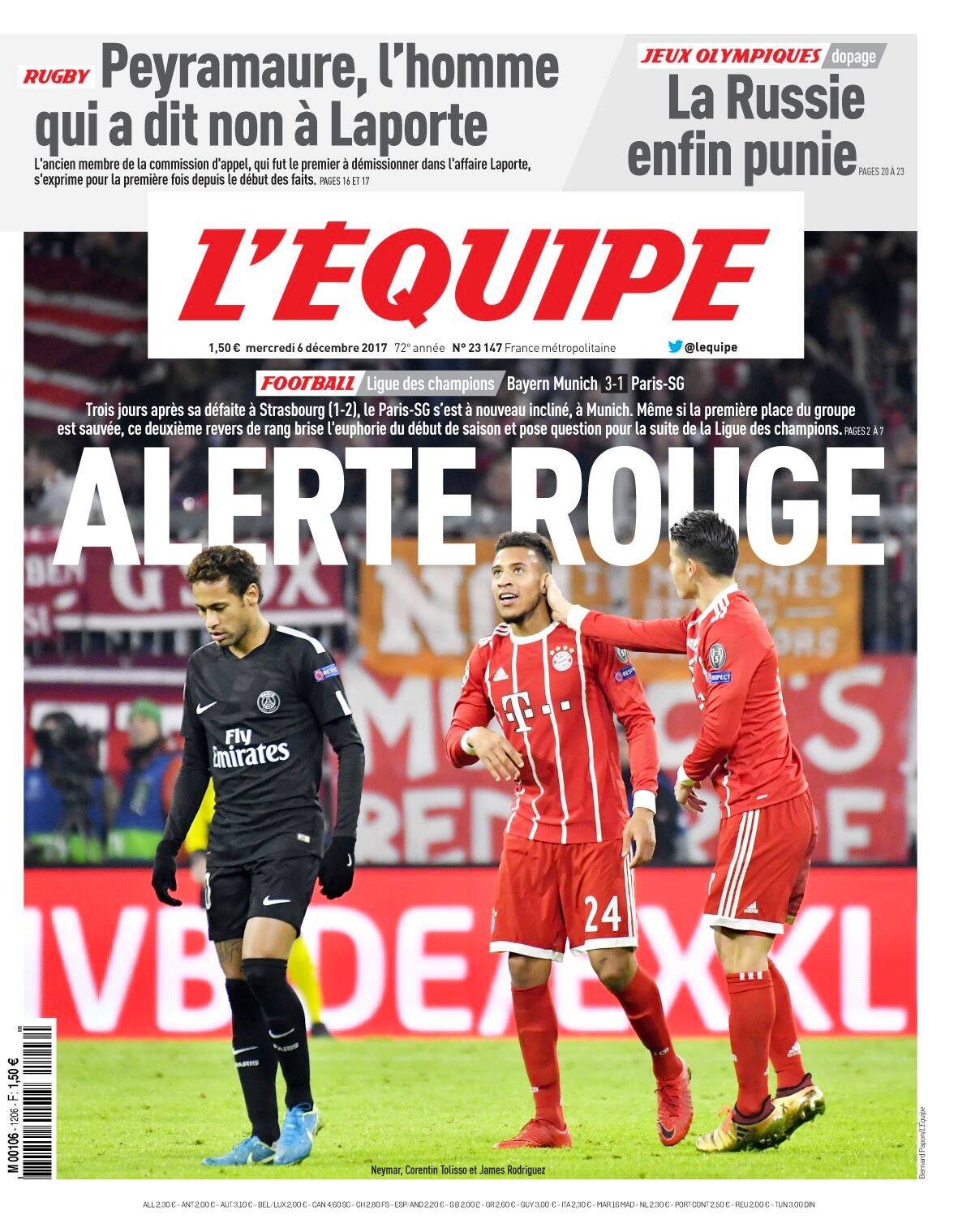 La Champions League campeggia anche sulle pagine dei quotidiani sportivi esteri. L'Equipe titola "Alerte rouge", allarme rosso, riferendosi al PSG. Un gioco di parole sfruttando anche il colore della maglia del Bayern Monaco che ieri ha sconfitto 3-1 Neymar e compagni. "Tre giorni dopo la sconfitta di Strasburgo - prosegue il giornale francese - il PSG perde ancora. E nonostante il primato del gruppo sia salvo, queste due sconfitte attenuano l'euforia dell'inizio di stagione e pongono qualche dubbio per il cammino in Champions". Marca scrive "Sia fatta la luce", con una foto di Cristiano Ronaldo. "Un Real nelle tenebre si affida a un Cristiano che brilla in Champions". Il portoghese segnando metterebbe a segno l'ennesimo record: essere l'unico ad aver fatto gol in tutte le partite della fase a gironi. Ronaldo è il protagonista anche della prima di AS: "Cristiano en su salsa", ovvero nel suo ambiente ideale, la Champions. Sul fronte Barcellona, "Infalible" titola il Mundo Deportivo: la squadra di Valverde chiude una grande fase a gironi battendo lo Sporting. Eloquente il titolo di Sport: "Ora viene il bello". Il riferimento è chiaramente alla prossima fase della Champions, con i rischi Bayern e Chelsea al sorteggio.