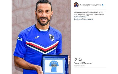 Qualche mese fa ha festeggiato le sue 100 presenze in blucerchiato (foto da Instagram)