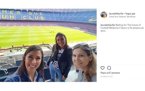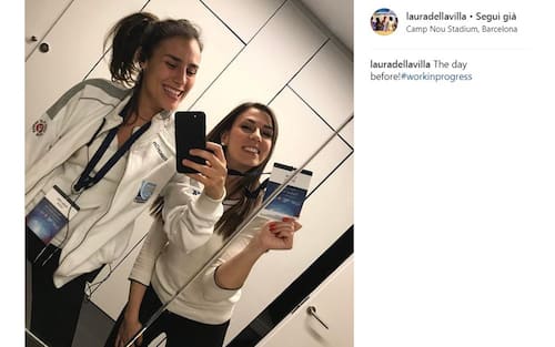 Laura e le colleghe al Camp Nou (foto da Instagram)