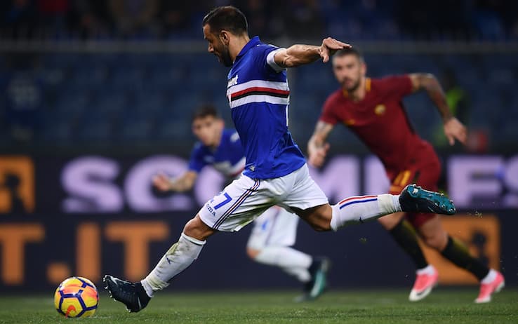 La prima grande palla gol del match è però al 26’, con Viviano a salvare di piede su Ferrari, giunto in disperato anticipo in piena area su Nainggolan. Al 39’ la seconda grande chance giallorossa, col colpo di testa di Manolas da palla inattiva alto di un soffio. La vera svolta del primo tempo, poi, a due minuti dall’intervallo. Roma in attacco: Strootman salta l’uomo e viene atterrato sulla fascia destra: nessun fischio per Orsato. La Samp ribalta allora l’azione e Kolarov interviene scomposto, in area, su cross di Ramirez. Dubbi, ma si prosegue. Passano parecchi secondi (ma il gioco non si ferma, c’è continuità di azione) e Orsato viene richiamato al Var. Decisione immediata: rigore, e Quagliarella non fallisce. Sedicesimo gol in A per lui quest’anno, e record personale di sempre ulteriormente ritoccato.