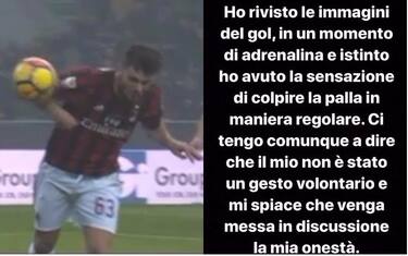 L'attaccante rossonero, dopo il gol discusso siglato col braccio, ha spiegato la sua posizione su Instagram: "In un momento di adrenalina pensavo fosse regolare, poi ho rivisto le immagini. Mi spiace che venga messa in discussione la mia onestà"