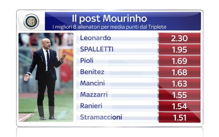 L'Inter ha concluso già 9 delle prime 23 giornate in parità, lo stesso numero conseguito da Mazzarri quattro stagioni fa. Peggio ha fatto solo Mancini che, nel 2004-05, pareggiò 15 volte nei primi 23 turni. L'allenatore toscano mantiene comunque la seconda miglior media punti dopo l'addio di Mourinho