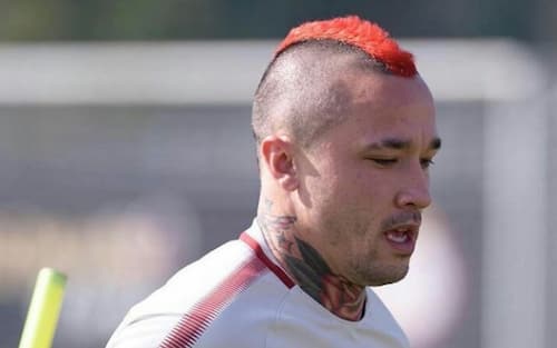 Così Nainggolan passa dalla testa rasata alla cresta, che sia completamente nera, biondo platino, rossa oppure sfumata-