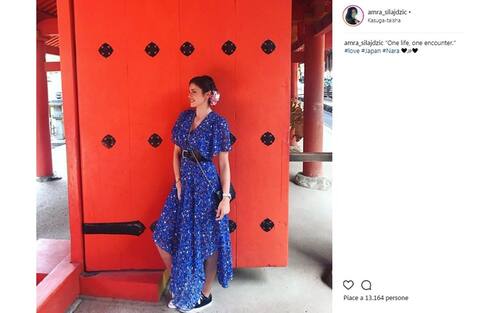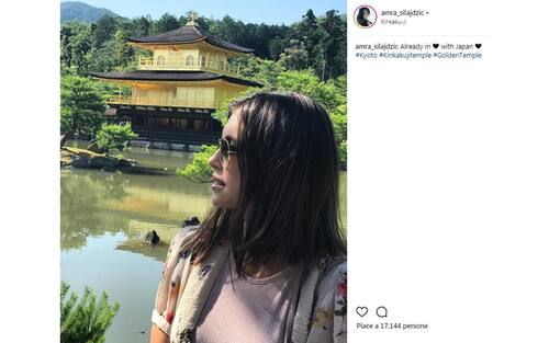 Amra Silajdzic e sullo sfondo il Tempio d'oro di Kyoto (foto da Instagram)