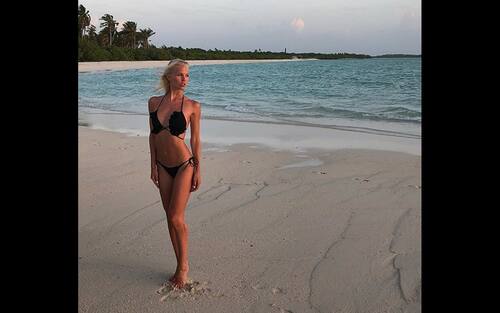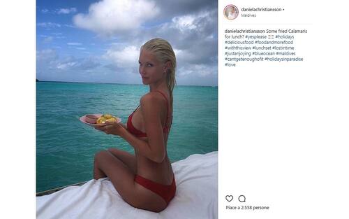 Non è stata una delle migliori annate per un altro argentino, Maxi Lopez: la punta dell'Udinese, però, ha di che consolarsi... con la compagna Daniela Christiansson, tra Dubai e le Maldive (foto da Instagram)
