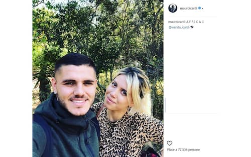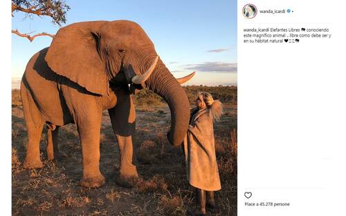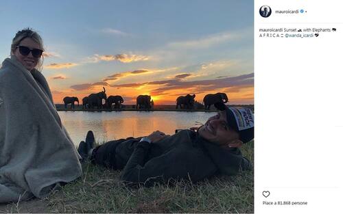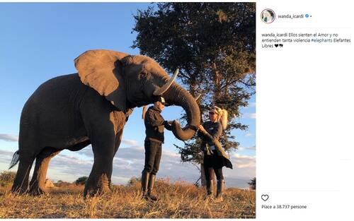 Hanno scelto l'Africa per le loro vacanze Mauro e Wanda Icardi, qui alle prese con un elefante! (foto da Instagram)
