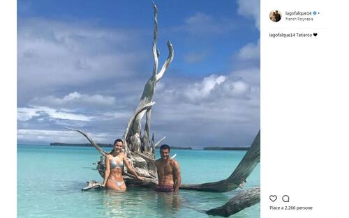 Hanno scelto Bora Bora Iago Falque e signora: per l'attaccante del Torino è stata un'ottima stagione, condita da 12 gol (foto da Instagram)