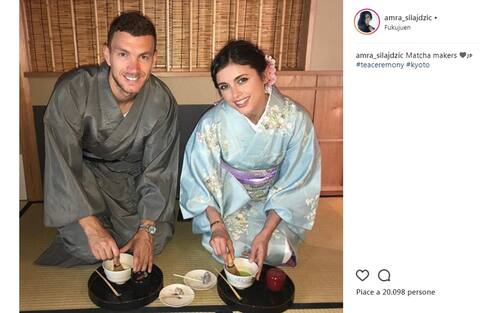 Ci spostiamo in Giappone con Edin Dzeko e la moglie Amra: a Kyoto per la cerimonia del te (foto da Instagram)