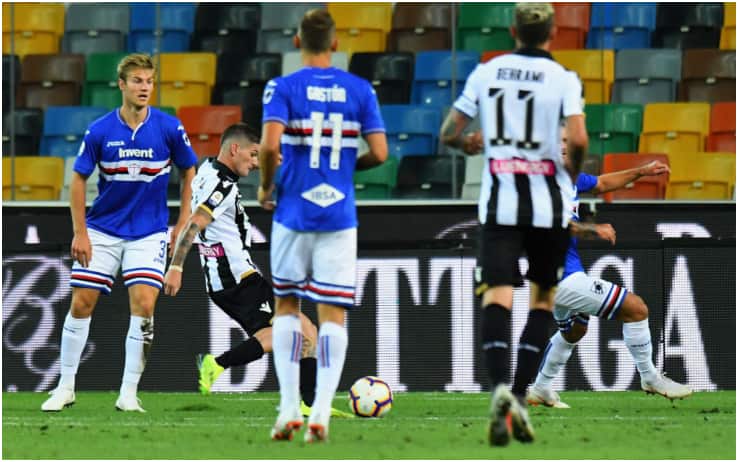 Una rete in avvio dello spagnolo basta ai friulani per portare a casa la prima vittoria della stagione. La squadra di Giampaolo si sveglia troppo tardi e incassa un ko al debutto in campionato